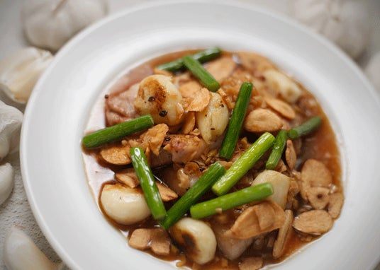 ボイルしたごろっとしたにんにくと、フレッシュなにんにくの芽をたっぷり使い、にんにく本来の豊かな風味とホクホク感を引き立てます。味わい深いにんにくを堪能する一皿です。