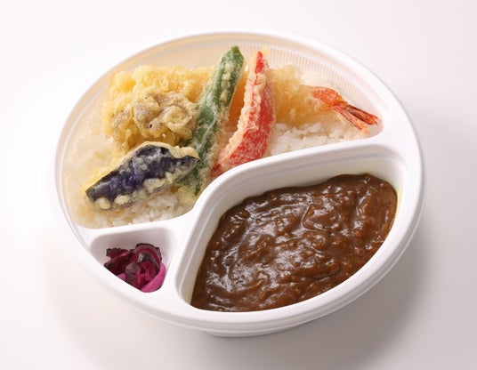 圓堂で密かに人気のカレーと、天ぷらの組み合わせ。