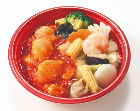 人気のそう菜、エビチリと八宝菜が一度に味わえる贅沢丼。