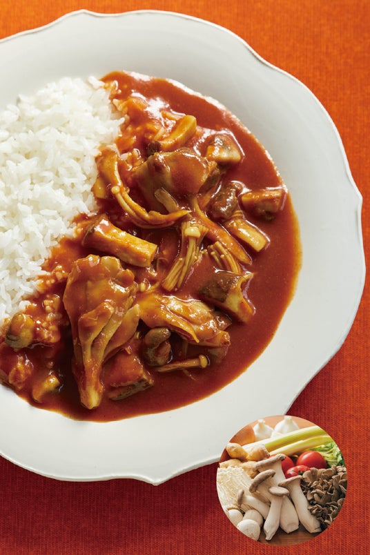 大きな野菜やきのこを独自のスパイス配合でじっくり煮込んでいます。素材のやさしい甘みとスパイスの風味が食欲 をそそります。ボリュームたっぷりですが脂質がない分、さっぱりいただけます。