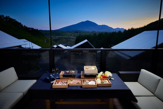 宿泊の客室は、プレジデンシャルスイート「ポラリス(112平方メートル )」と、スーペリアスイート「シリウス(74平方メートル )」、デラックススイート「カシオペア(46平方メートル )」の3タイプより選択いただけます。全ての客室から浅間山ビューを一望いただけるので、室内やデッキテラスから新緑の絶景を眺めて森林浴をしたり、バスタイムを楽しんだり、思い思いの優雅な時間をお過ごしください。