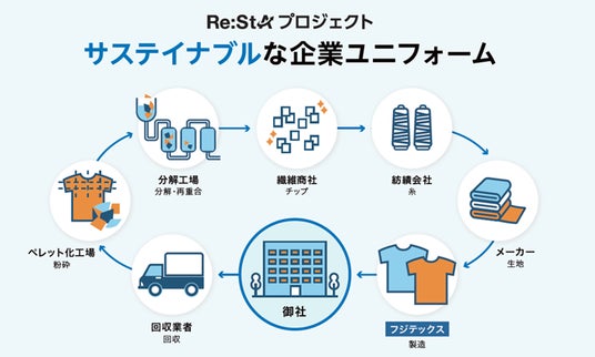 この度、当社が創業以来培ってきた環境ビジネスのノウハウを生かし、衣類から衣類へ、繊維から繊維へ、回収したユニフォームからユニフォームを製造するリサイクルの仕組みを実現しました。