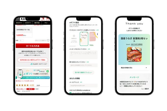 厳選した国産うなぎ通販専門店「大五うなぎ工房」を展開する大五通商株式会社(本社所在地:静岡県静岡市、代表取締役社長:瓦谷 健)は、AnyReach株式会社(本社:東京都中央区、代表取締役:中島 功之祐)のeギフトサービス『AnyGift(エニーギフト)』の提供を開始しました。