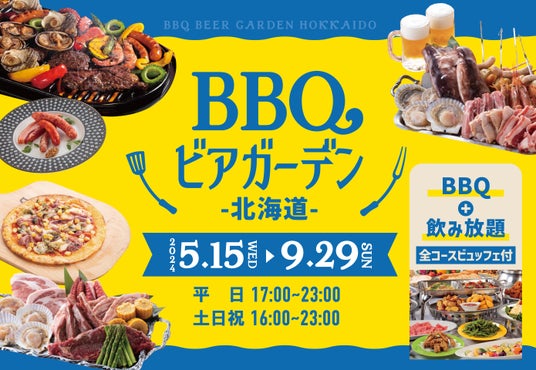 北海道産地直送の新鮮な魚介類をはじめ、道産ひこま豚や粗挽きフランク串、ジンギスカンなど、北海道を満喫できる食材をバーベキューやビュッフェ、アラカルトメニューでお楽しみいただける「BBQビアガーデン北海道」が5月15日(水)にオープンいたします。