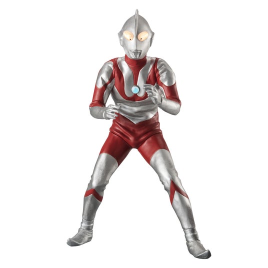 ウルトラマン 第18話『遊星から来た兄弟』より、ウルトラマン(Bタイプ)のファイティングポーズ、翻訳機を持ったザラブ星人と、にせウルトラマンを含む全8種のアルティメットルミナスが登場!