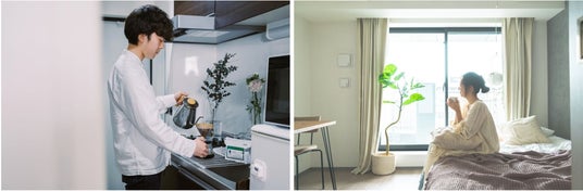 Unitoの直営物件は、すべての物件で「リレント」することができ、フレキシブルな暮らし方を実現することができます。「住む」と「泊まる」の2つの用途に最適化し、居住者が家を使わない時間は、ホテルとして貸し出す「リレント」を搭載したサービスアパートメントです。二拠点生活や出張、長期の旅行など、さまざまなライフスタイルに対応し、フレキシブルな暮らしを実現します。