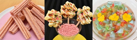 シーフードのセビーチェ/クリーミーチキンファヒータとコーンチップ/ケールのNY風サラダ/炙り焼きマグロのケイジャンドレッシング/ガイヤニーズカレー/ピリ辛ケイジャンシュリンプ/コーンドッグ/ワッフルポップ/チュリトス/かき氷/他