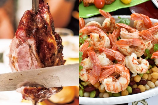 左 シーフードのセビーチェ、右 骨付き豚肉のバーベキュー