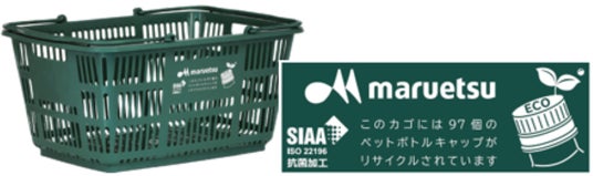 マルエツで店頭回収したペットボトルキャップの再生原料を約30%使用した買い物カゴを導入し、プラスチックとCO2の削減に貢献いたします。