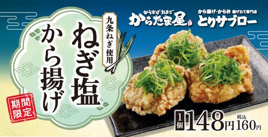 株式会社魁力屋(https://corp.kairikiya.co.jp/ 本社:京都市中京区、代表取締役社長:藤田 宗、以下魁力屋)は、持ち帰りから揚げ専門店「からたま屋」「とりサブロー」にて、2024年5月15日(水)より「ねぎ塩から揚げ」を販売いたします。