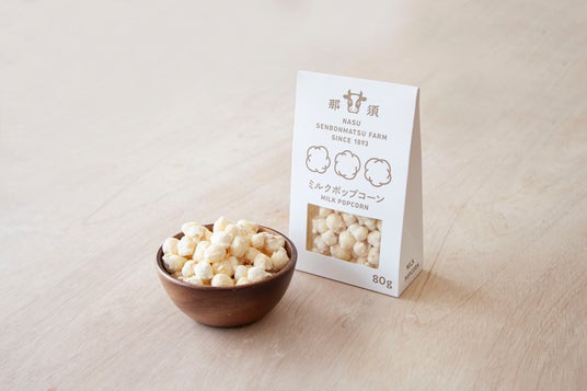 - 千本松牧場牛乳入りミルクジャムを使用したポップコーンです。