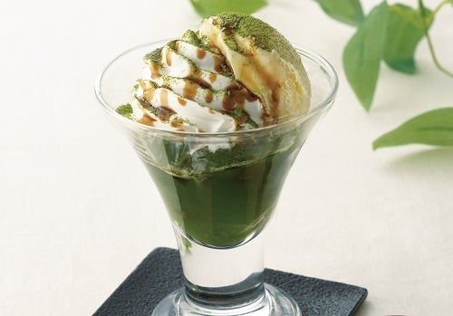 ほろ苦い宇治抹茶ゼリーにホイップクリームとバニラアイスを合わせた和風パフェ。上質な豚肉とだしを堪能した後の〆にふさわしい逸品。