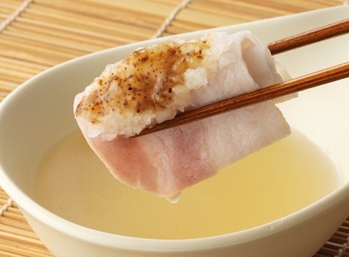 料理業界が注目する「鶏節」を使用した特製だし「鶏節」は動物性の豊富な旨みを効率的に取れる新しい食材として、料理人や食品業界に注目されています。ラーメンのスープやイタリアンレストランで使われたりと、食のジャンルを問わず様々なシーンで話題になっています。鶏節とは鰹節のように鶏を加工して削ったもの。節にすることで、鶏の持つ旨み成分が凝縮されます。そのような旨みの強い鶏節に、鰹節・昆布・野菜などを合わせて香り高い特製だしをつくりました。あっさりとしつつも旨みが濃く深い味わいで、親近感がありつつも上質なだしが黒豚や野菜の味をより引き立てます。