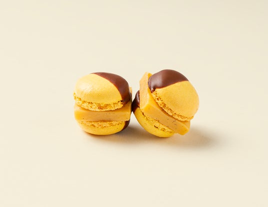 マカロンとチョコレートが織りなす複雑で深みのある味わいや香りを楽しんでいただくため、一粒の大きさを小ぶりにし、さらにカカオの香りがストレートに伝わる80%のチョコレートを上掛けしております。