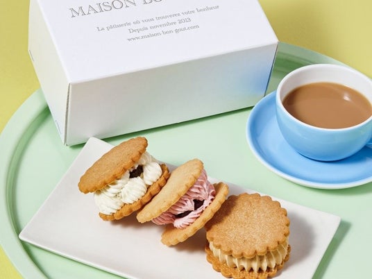 神奈川県・茅ヶ崎市に店舗を構えるパティスリー<メゾンボングゥ>が百貨店に初出店。<ノリエット>で経験を積んだ伊藤直樹シェフと雪子シェフ。アルザス地方の名店<クリスティーヌ・フェルベール>での雪子シェフの経験がお店のお菓子づくりにも生かされており、今回は人気のタルトや焼菓子をご紹介します。三味を表す「サヴール」は、3種の異なる味わいと華やかな香りが楽しめるバターサンド。バーボン樽熟成のラム酒漬けにしたレーズン、アルザス地方の自然派ワイン漬けのドライイチゴ、オリジナルのキャラメルとナッツをサクサク食感のサブレと合わせました。