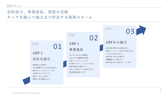 株式会社エービーエフキャピタル(以下ABF)(本社東京都港区、代表取締役:熊原充志)は、ABF2号投資事業有限責任組合(以下ABF2号ファンド)について、ファーストクローズを完了したことをお知らせいたします。今後は投資の実行・バリューアップと並行しながら年内のファイナルクローズに向けて、資金調達を続けてまいります。