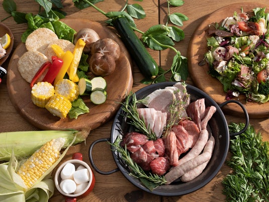メニュー例 ・シェフズ テラス定番のコブサラダ ・BBQプレート(宮城県産『森林どり』、岩手県産『岩中豚』、笹かまぼこ、エビ、野菜各種、サンチュ、ライスバンズ、マシュマロなど