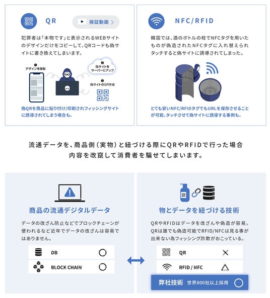 QRとNFC/RFIDはとても便利だが真贋判定分野ではフィッシング詐欺に利用されているケースがある
