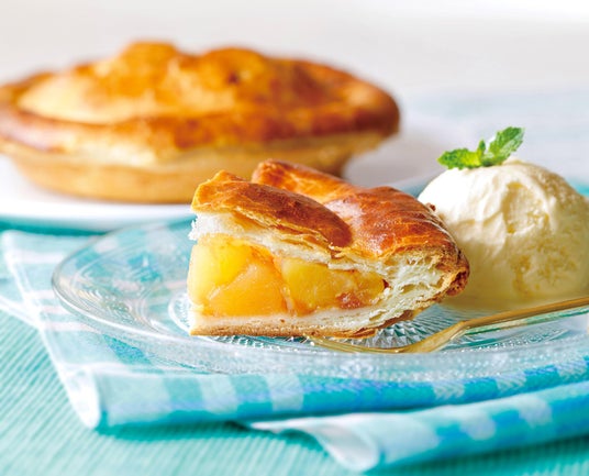 《紀ノ国屋》アップルパイ 5号 発売から60年以上。アメリカンスタイルの特長でもある練りパイ生地は外はさっくり、中はしっとり。りんごの美味しさをギュッと閉じ込めるように、ひとつひとつ愛情をこめて丁寧に包んで焼き上げた紀ノ国屋のロングセラー商品です。