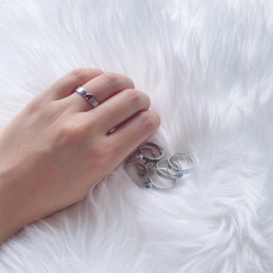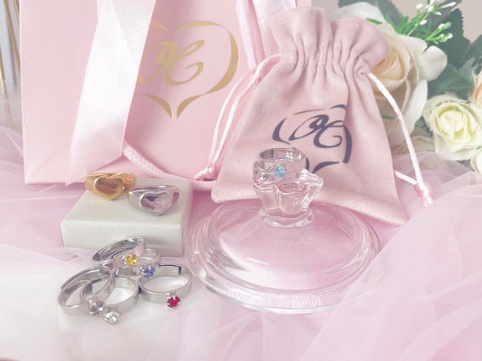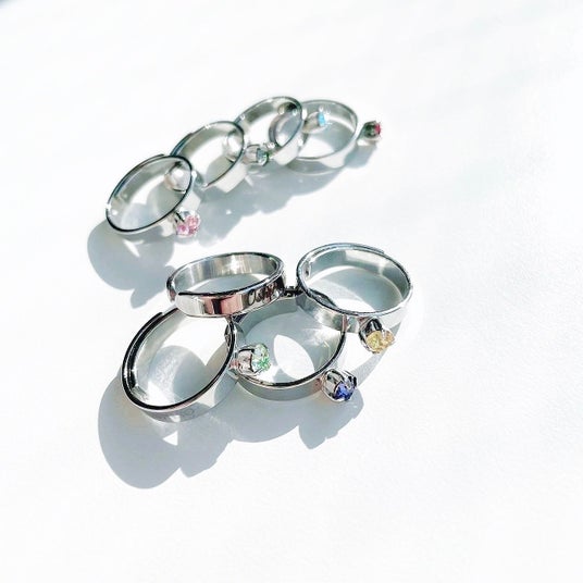 大きなカラーストーンがワンポイント(ハート)推しとの結婚モチーフのリングを販売いたします。推しカラーをファッションとして取り入れることができます。(販売価格:6,600円)
