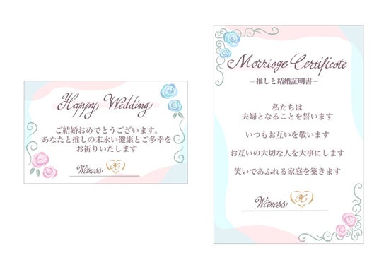 指輪&ブレスレット&キーホルダーの3商品と、"結婚証明書"がセットになった「パーフェクト推しアクセセット」や、リングを2商品オーダーできる「ペアリングセット」が登場いたします。友達同士はもちろん、推しカップルやケミで作るのもおすすめ。