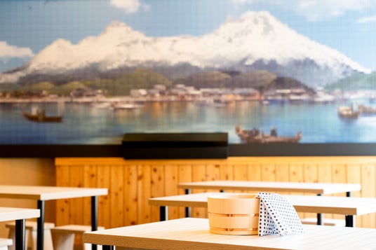 「湯けむり処 しかべ焼き」の目の前には、今年発見から100周年を迎える北海道遺産”しかべ間歇泉”があります。「しかべ焼きという海の恵みと、しかべ間歇泉という温泉の恵み。ふたつの鹿部の恵みを楽しんでいただきたい」がテーマ。銭湯によくある富士山の壁画かと思いきや鹿部が誇る秀峰・駒ケ岳だったり……店内には随所にどこか懐かしい温泉街の雰囲気を感じる仕掛けが。