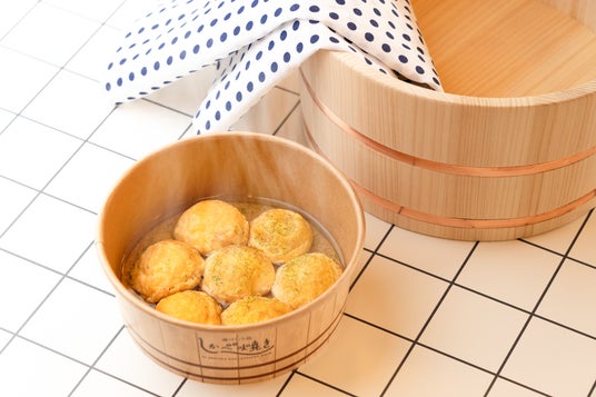 ふわふわの生地に包まれた、鹿部(しかべ)特産の噴火湾湾口ほたてや水だこを、最高級と称される白口浜真昆布(しろくちはままこんぶ)のお出汁に浸して食べる新名物。味変にはたらこバターや明太子バター、青のりバターを用意、鹿部の海の恵みを詰め込みました。