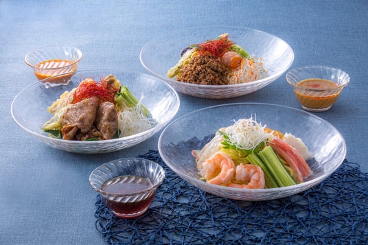 中国レストラン 聚景園では、毎年ご好評いただいている、暑い季節にぴったりの冷麺をご用意いたします。高級食材をふんだんに使用した味わい豊かな「特選 神戸プレミアム冷麺コース」をはじめ、海の幸たっぷりの海鮮冷麺や刺激的な担々麺、ボリューム満点の和牛スタミナ冷麺が登場。点心とサラダがついたお得な点心セットもございます。