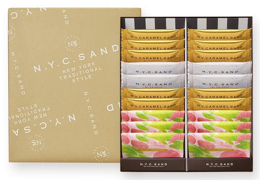 【価 格】 20個入 3,942円(税込)(N.Y.キャラメルサンド10個、N.Y.スカッチサンド4個、N.Y.抹茶ストロベリーキャラメルサンド6個)