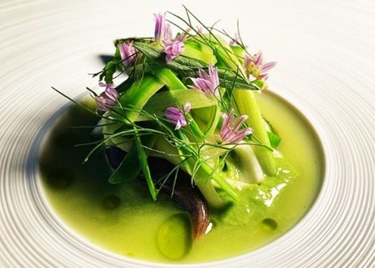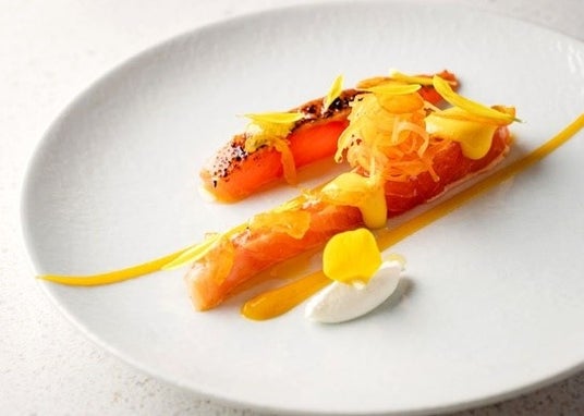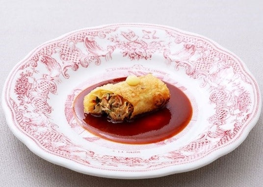 渡仏時代にフランス料理は自由であると知った。古典の論理と技法を踏まえつつ和食や中華の要素を重ねる。