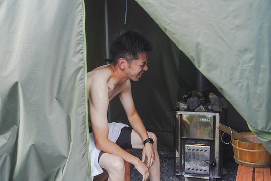 ペット連れで泊まれる唯一のサウナ付き宿、テントサウナで汗をかいて水風呂でスッキリ。整いスペースも完備されており、ゆっくりおくつろぎいただけます。