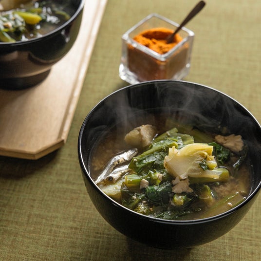 青菜を炒めて汁仕立てにした「いり菜汁」