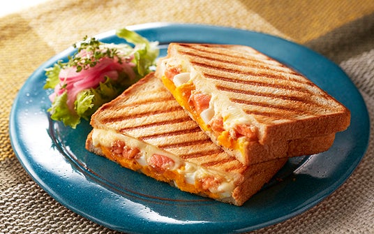 [サーモン明太子のホットサンド]パンに挟んで焼くだけ、お手軽ホットサンド。