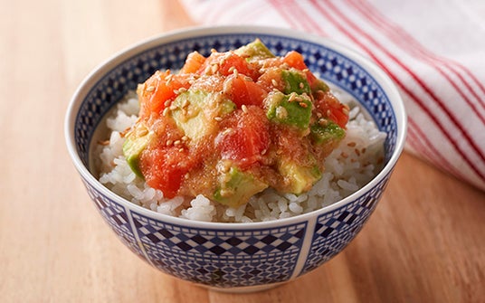 [サーモン明太子のポキ丼]アボカドと和えて、辛旨ポキ丼に。