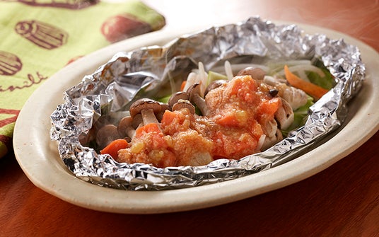 [サーモン明太子のホイルちゃんちゃん焼]焼いても美味しい!キャンプにおすすめ。