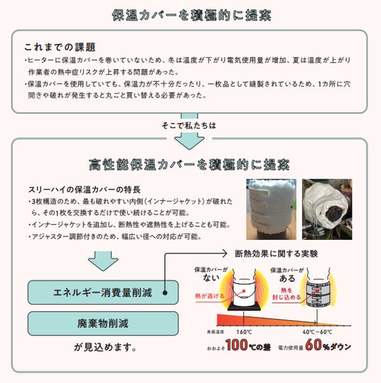 スリーハイが提案する保温カバーで、電力使用量60%ダウンが実現。
