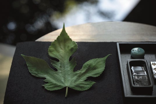 現代の七夕行事では笹を用いるのが主流ですが、平安時代に「あまのがは とわたるふねの かぢのはに おもふことをも かきつくるかな」(*3) と詠まれているように、平安貴族は七夕の時期に願いを込め、梶の葉に文字をしたためていました。木々の間を吹き抜ける風と滝の流れる音に包まれる納涼床で、想いをしたため風流な時間を過ごします。