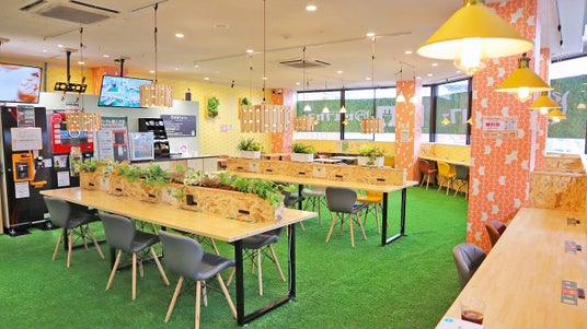 スタッフの目を気にせず仕事、勉強に集中できるような”無人”のカフェ。