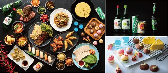 ※画像左:「韓国グルメフェア」ディナーイメージ 右上:同ドリンクイメージ:右下:同スイーツイメージ