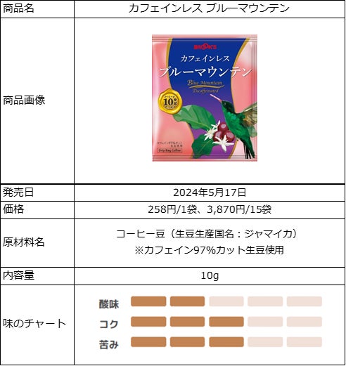 「グルメコーヒー」シリーズより『カフェインレス ブルーマウンテン』を2024年5月17日より発売いたします。『カフェインレス ブルーマウンテン』商品詳細はこちら