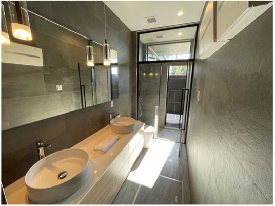 洗面所は2つ設置し、その奥には客室専用露天風呂がある