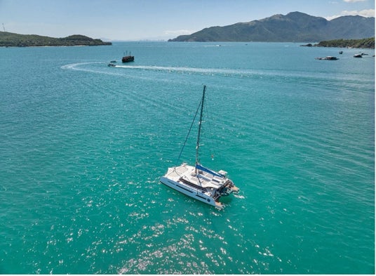 リゾートの専用ヨットでニャチャンの輝く海景を探索するカタマランの航海
