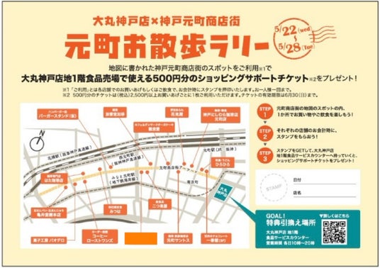 神戸元町商店街の指定のスポットをご利用[※1]で、大丸神戸店地1階食品売場で使える500円分のショッピングサポートチケット[※2]をプレゼント!