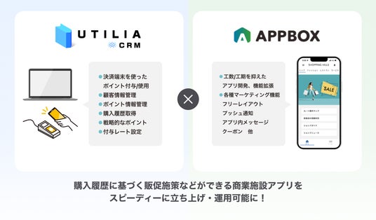 このたび、日本リテイルシステムの商業施設向け顧客管理システム「UTILIA CRM(ユーティリア シーアールエム)」と「APPBOX」とのシステム連携が完了し、日本リテイルシステムはアクセラレーターからソリューションパートナーへと移行しました。