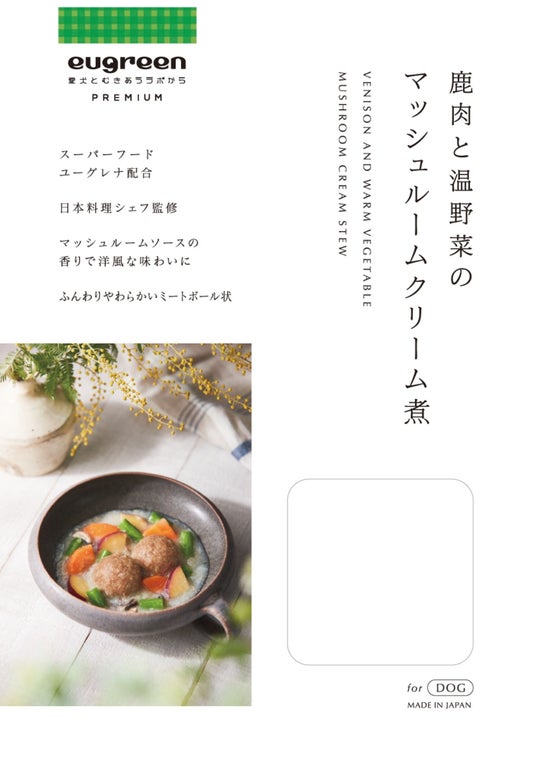 犬の平均寿命が年々伸びています。これは獣医療の発達だけでなく、日々の生活における食事のクオリティが上がったことも一因と言われています。当社でも愛犬愛猫の日々の健康をサポートするための食事として、59種類もの栄養素を持つ天然のスーパーフード「ユーグレナ」を配合した、『eugreen』シリーズを、当社オリジナルとして2021年に発売。ドライフード、レトルト惣菜、おやつの3種からなる当シリーズは、自社店舗での販売のみならず全国のペットショップでも採用されています。またレトルトフードはその品質と簡便さから、有名なペット同伴ホテルのペット用食事にも採用されるなど、これまでご好評をいただいてまいりました。