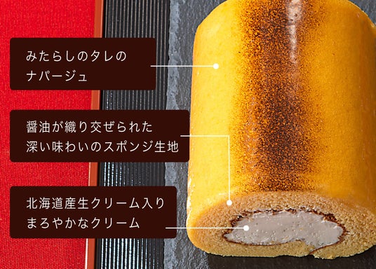 【数量限定商品】京都の伝統と味わいが融合した ロールケーキみたらしタレでコーティングした香ばしいスポンジに、醤油の風味が効いたふんわり生地。中心には北海道産生クリーム入りのまろやかなクリーム。和菓子の味わいをケーキで楽しめます。
