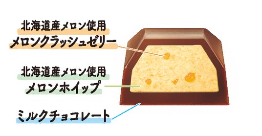 ・北海道産メロンを使用したメロンクラッシュゼリーとメロンホイップが入った大粒ミルクチョコレート