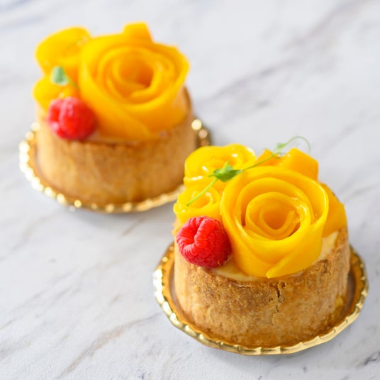 贅沢に宮崎マンゴーを使い、可愛らしい花束に見立てたタルト。