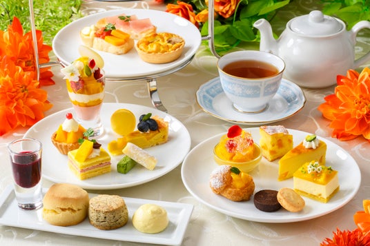マンゴーアフタヌーンティーでは、マンゴーと木苺のミニパフェやマンゴープリン、マンゴーとブルーベリーのタルト、マンゴーマカロンなど、マンゴーが主役のスイーツの数々をご堪能いただけます。
