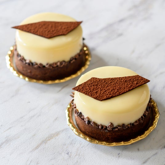 タルト仕立てのティラミスです。コーヒーシロップを生地にたっぷりしみこませ、マスカルポーネの軽いムースと合わせています。
